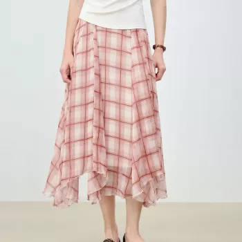 Retro Checkered Midi Skirt with Asymmetrical Hem